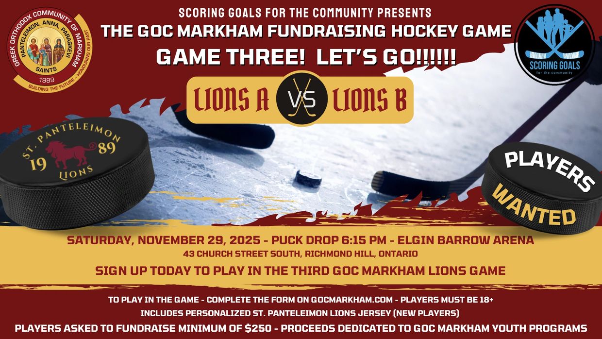 Welcome to the third GOC Markham Fundraising Hockey Game!